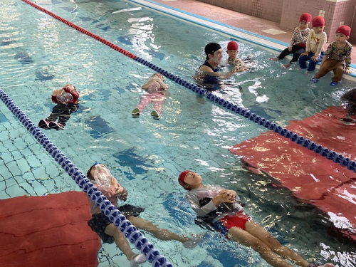 チャイルドスクールでは、毎年着衣水泳を行なっています